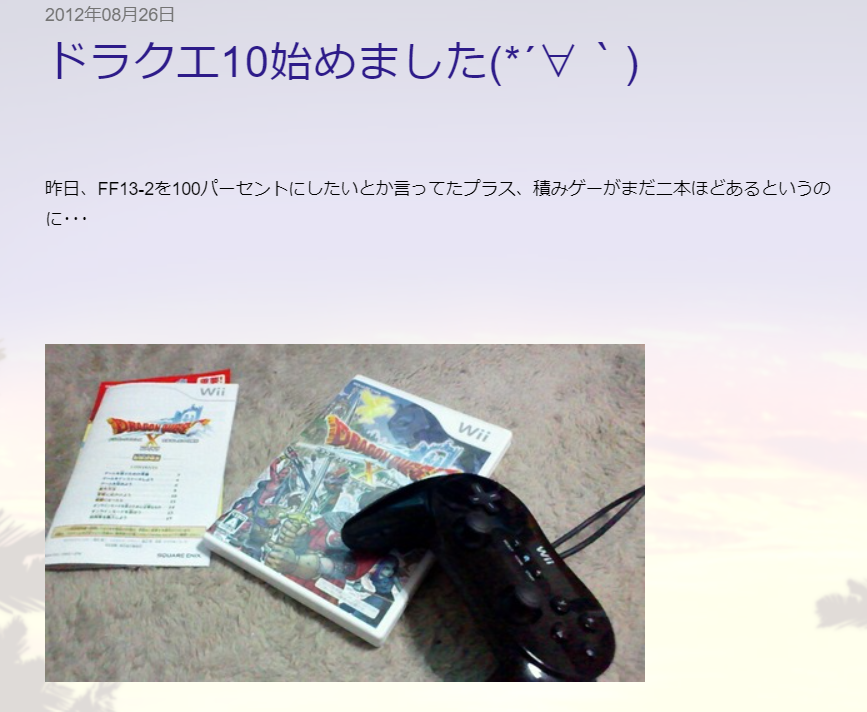 ちなみに、過去のブログ記事を辿ってみたら、僕のドラクエ10デビューは2012年8月26日でした。