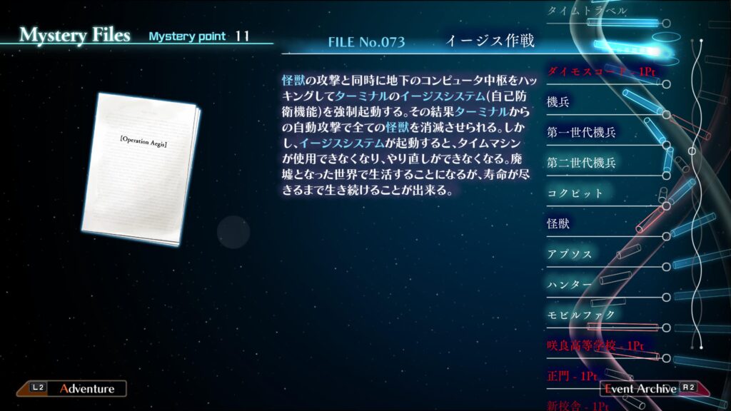 アドベンチャーパートは、過去のシナリオを見ながら、そのうち現在に追いつくんだろうなとか思ってたけど、そうはならなさそう。