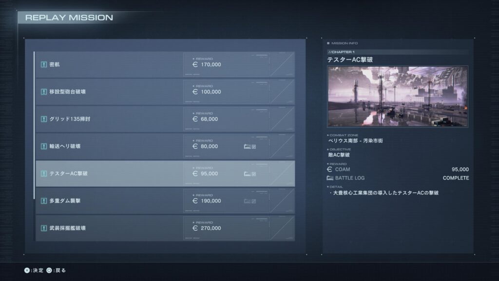 なんと今作は、クリアしたミッションがすぐさま振り返ることができる。