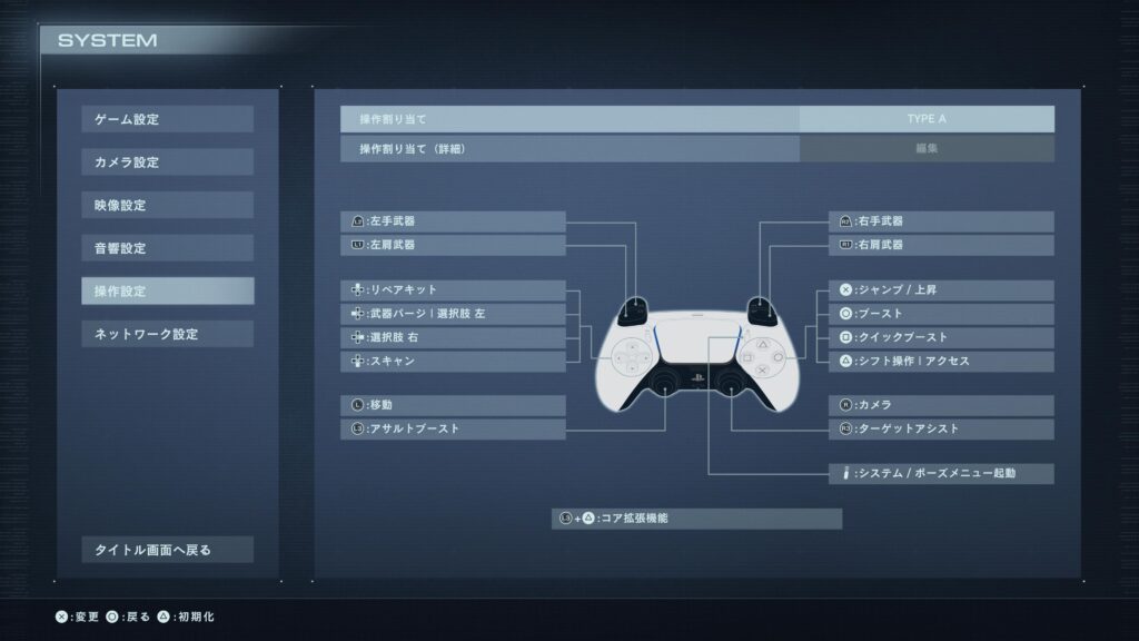 アーマードコアをプレイする前に、必ずやるのが操作ボタンの割り当て。
