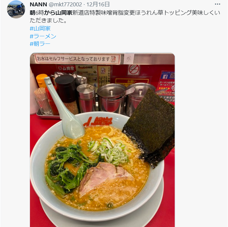 気になったので、Twitterで「朝から山岡家」で検索してみた。
