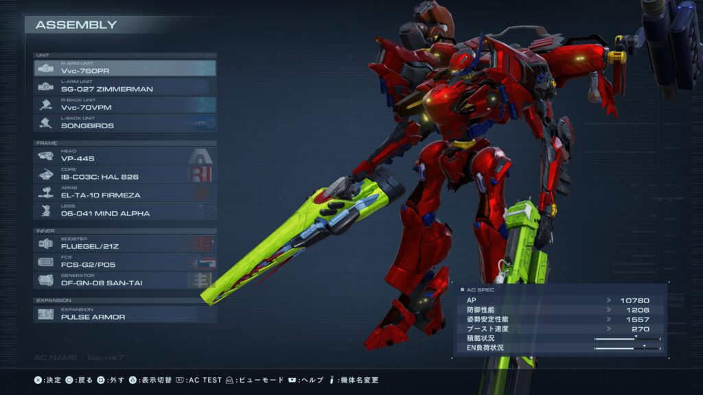 毎シリーズ、必ずこの感じに機体組んで進めることになるのが、僕のアーマードコアライフなのだ。ふっふふ。