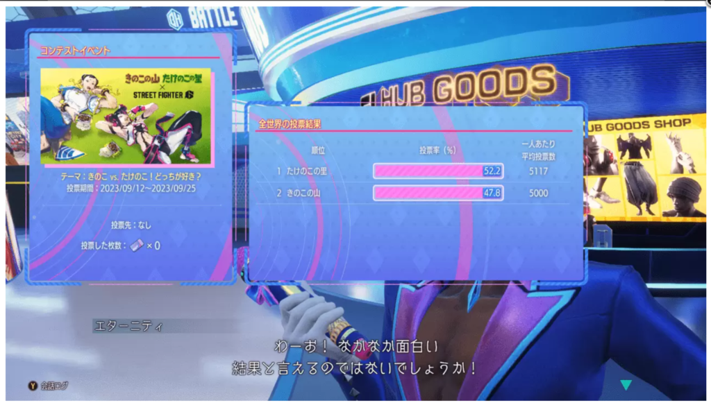 カプコンは9月25日、『ストリートファイター6』のゲーム内で開催された投票型のコンテスト「きのこ vs. たけのこ! どっちが好き?」の結果発表を行った。
