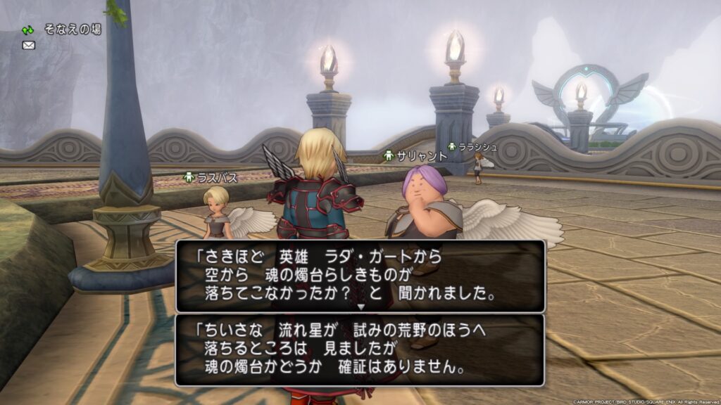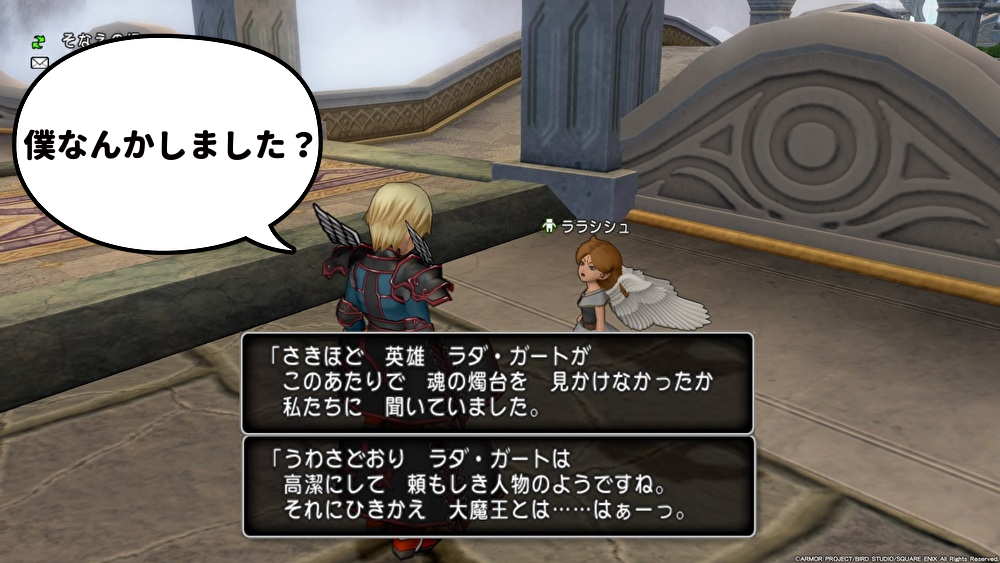 浮遊島に辿り着き、そなえの場にやってきた僕とラダさん。