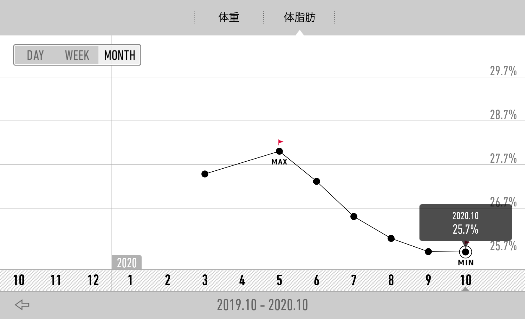 ……とか思ってた時期もありましたが、体脂肪のグラフを見ると、