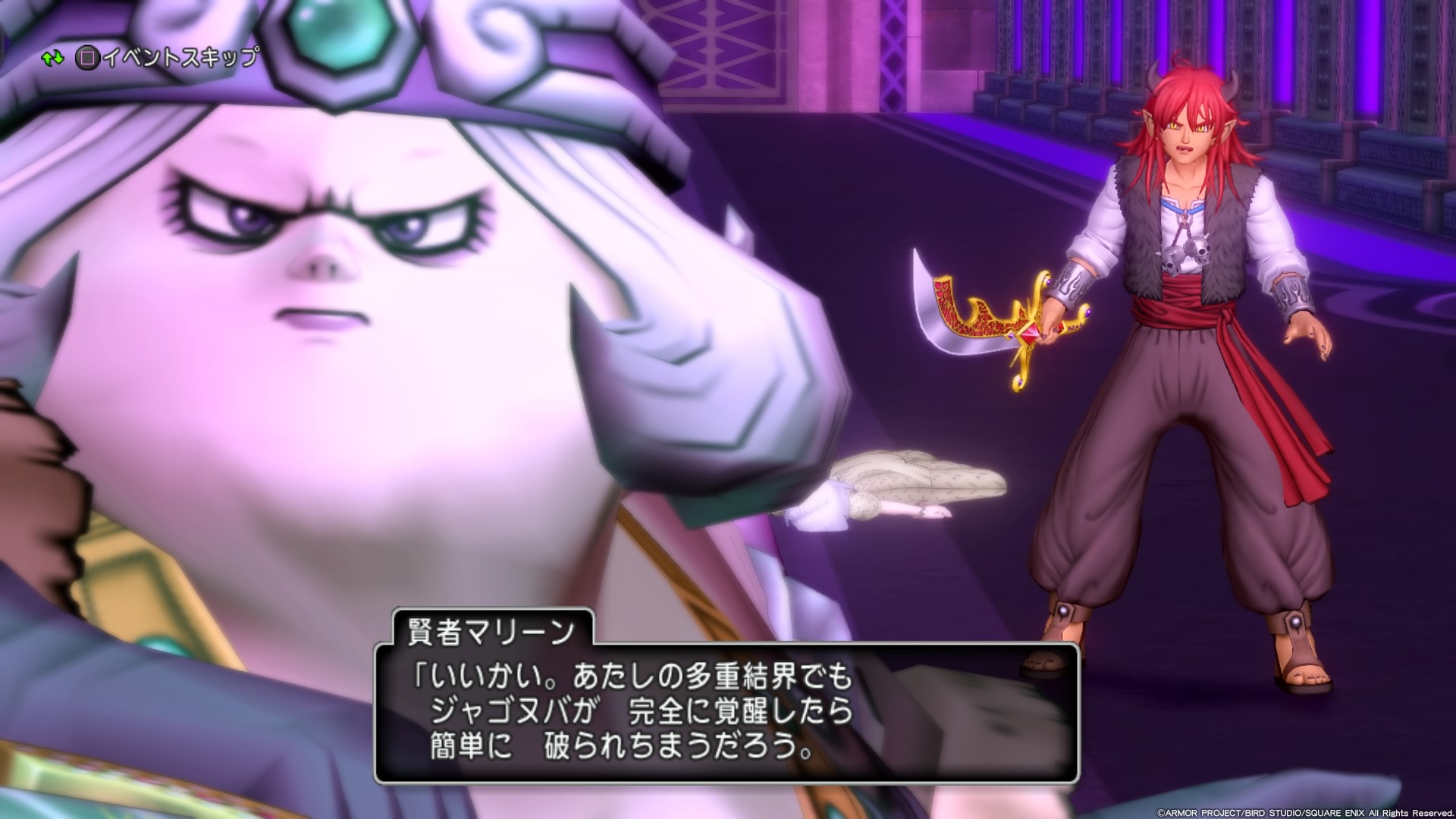 唐突に、急に、イルーシャとナラジアがジャゴヌバの近くに接近すると、封印(?)が微解凍状態の状態のジャゴヌバと何らかの反応を起こして、目だけ完全に解凍されちゃいます。この二人は本当に何者なんだろうか。