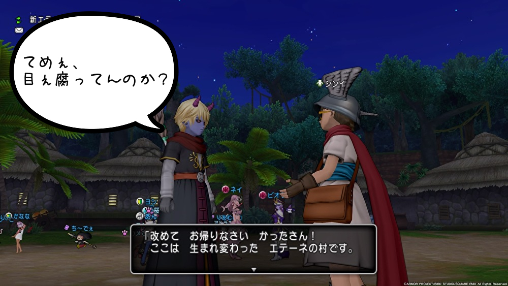 この姿でアストルティアに戻ったら、みんなびっくりするかなーと思って、エテーネ村に行ってみました。