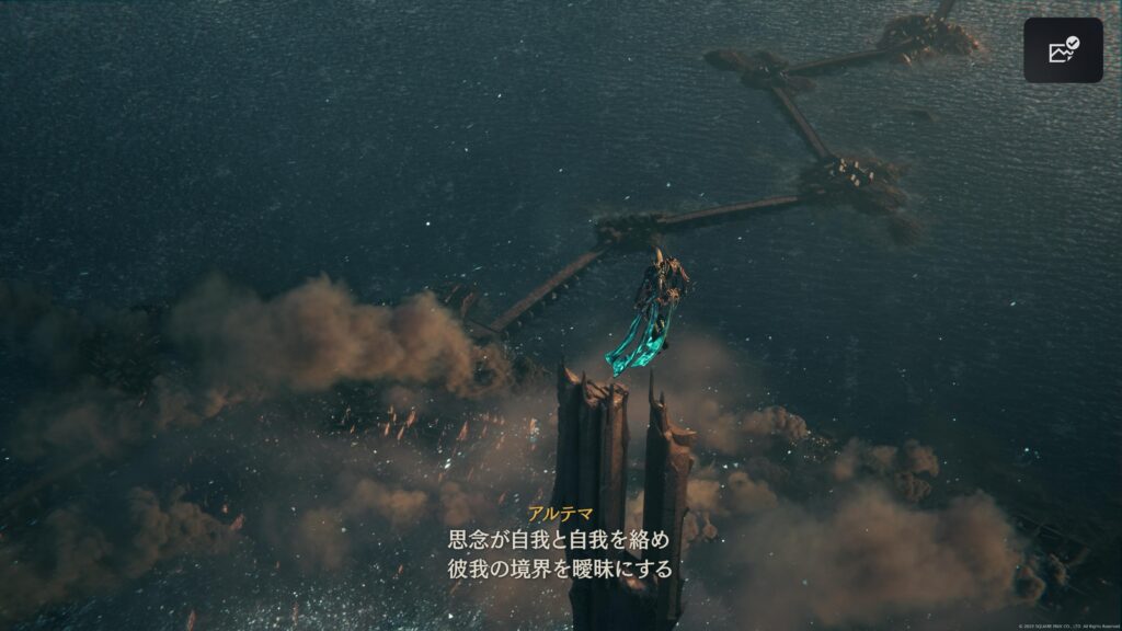 宙に浮いたアルテマは、大破したクリスタル自治領を見下ろす。