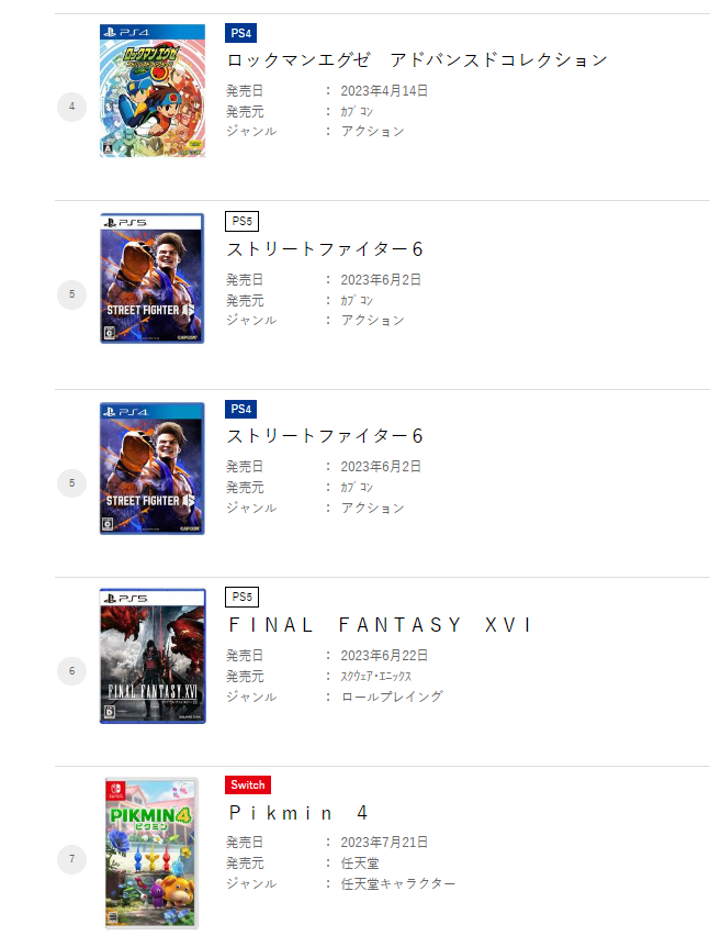 『ゲオのFF16の予約数がストリートファイター6に負けてるww』