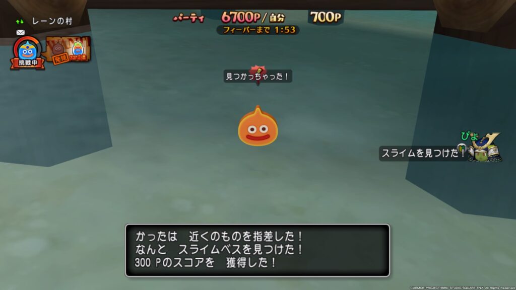 消しゴム風のスライムを見つけたら、×ボタン(Bボタン)を軽く押すと、