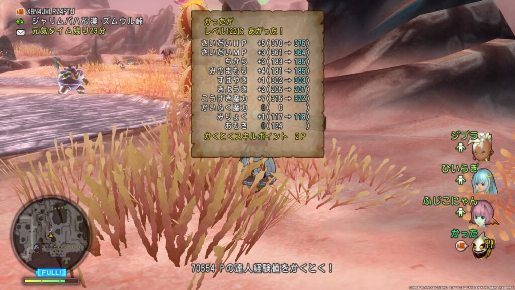 てなわけで、無事、まもの、まほう、けんじゃの3職をレベル122にできました。