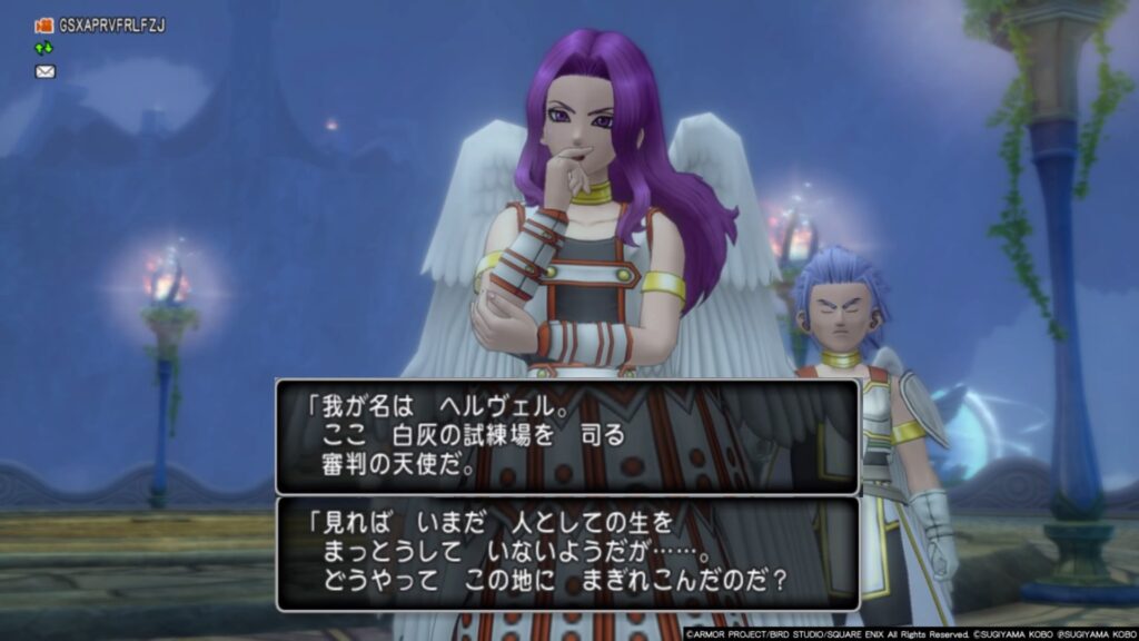 『我が名はヘルヴェル。ここ白灰の試練場を司る審判の天使だ。