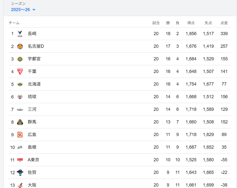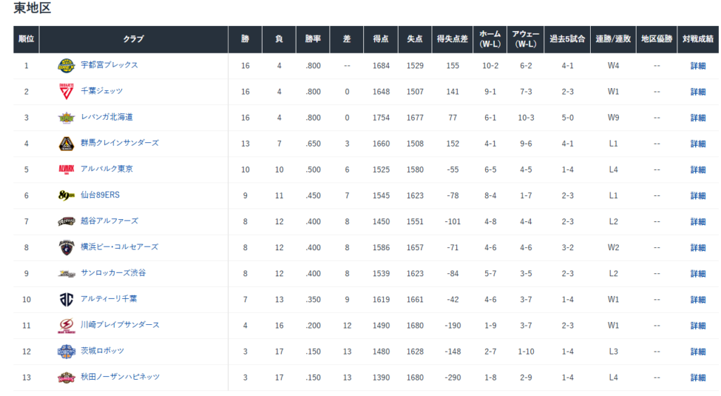 現在東地区で3位。得失点差で3位だけど、勝率は同率1位である。(2025年12月7日現在)