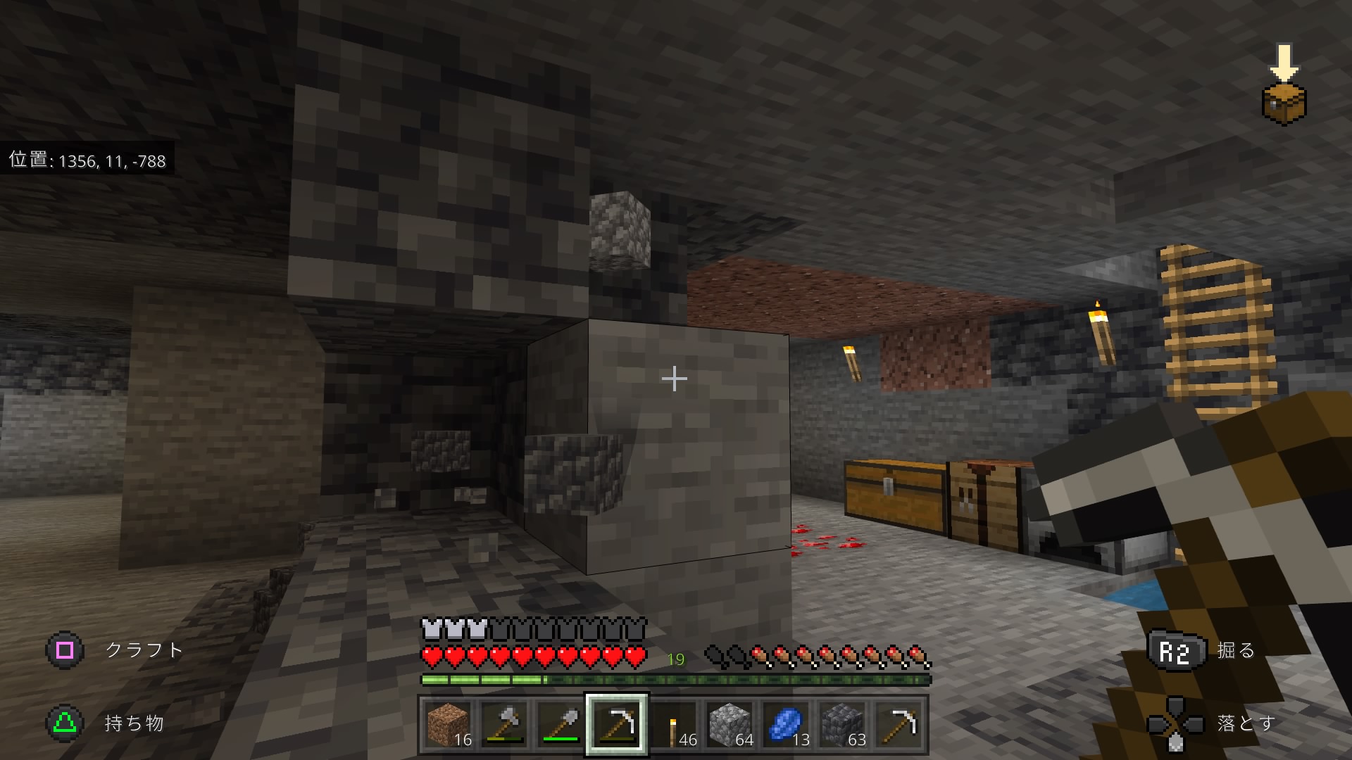 ダイヤのツルハシゲットしたのでまた掘り続けて行ったら、またダイヤ出ました。