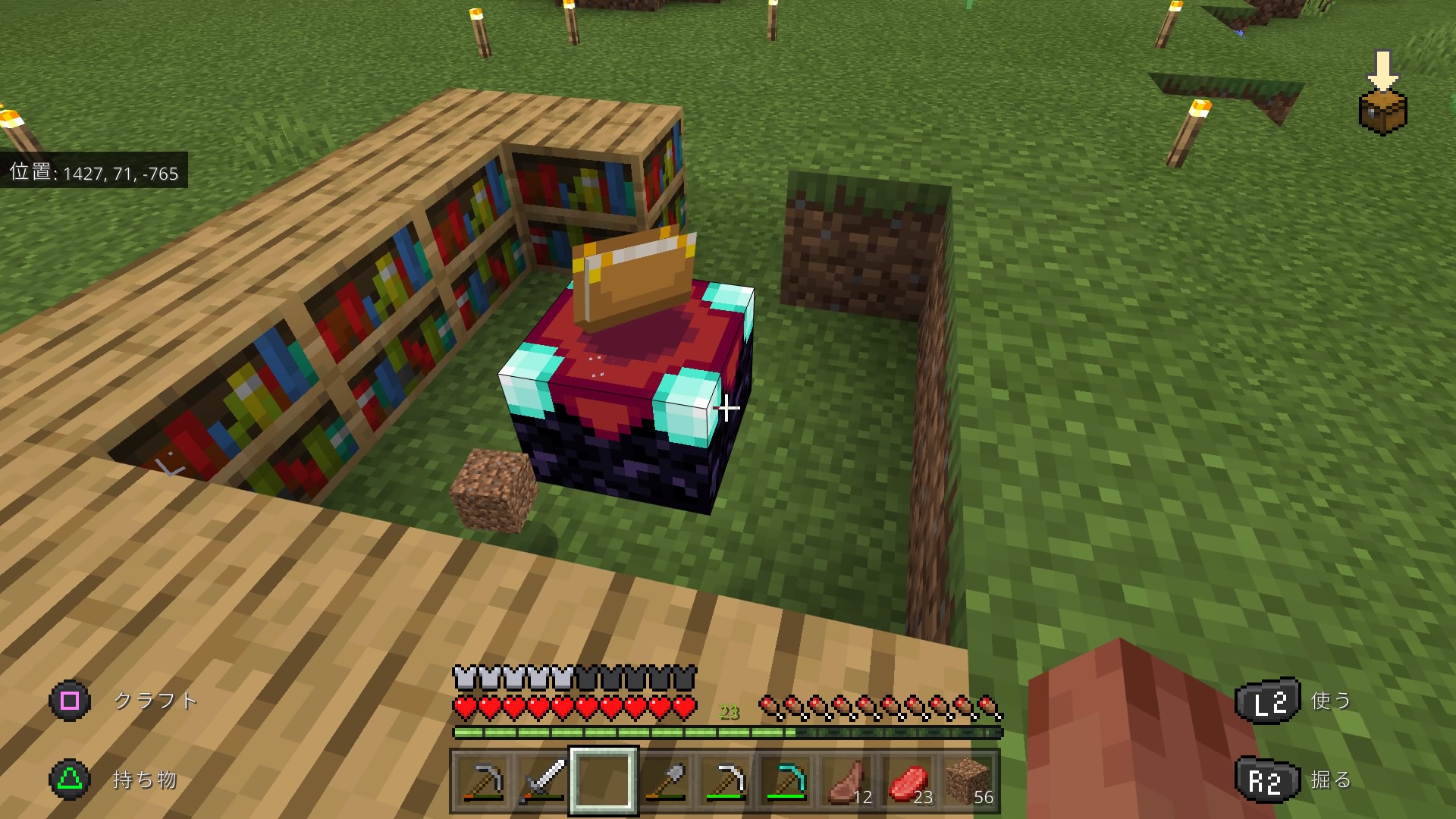 - 牛の皮、さとうきび、黒曜石でエンチャントテーブル作成