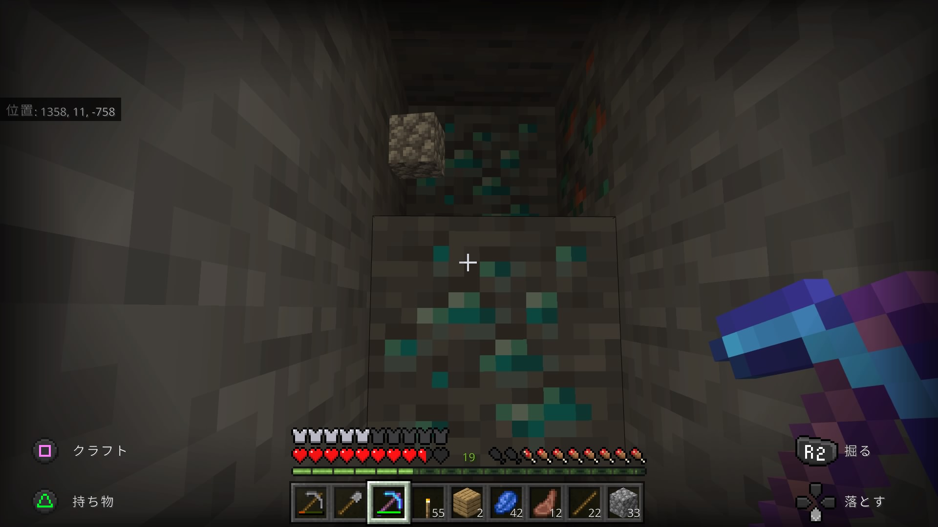 - ダイヤモンドゲット。その過程で鉄や石炭をそれなりの数ゲット