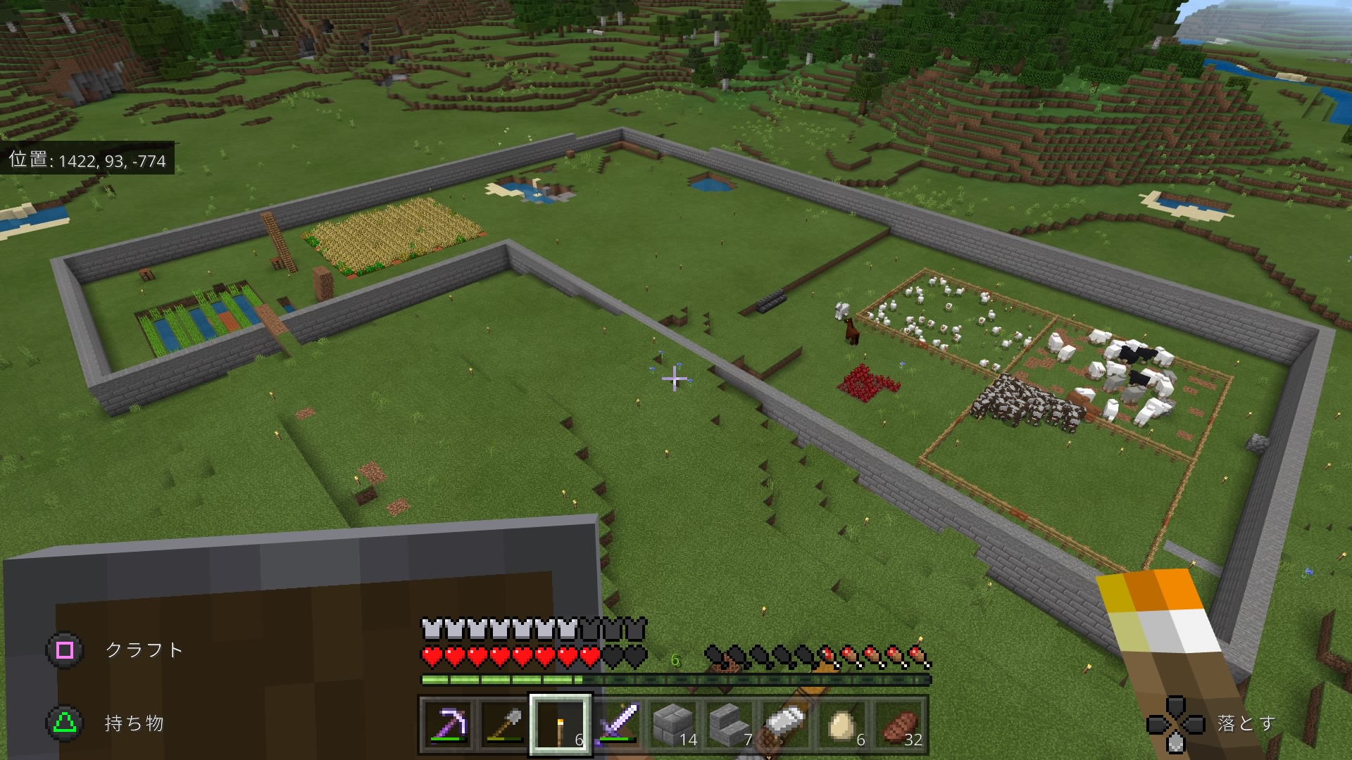 - とりあえず走り回ってヒツジを乱獲してウール3つゲット