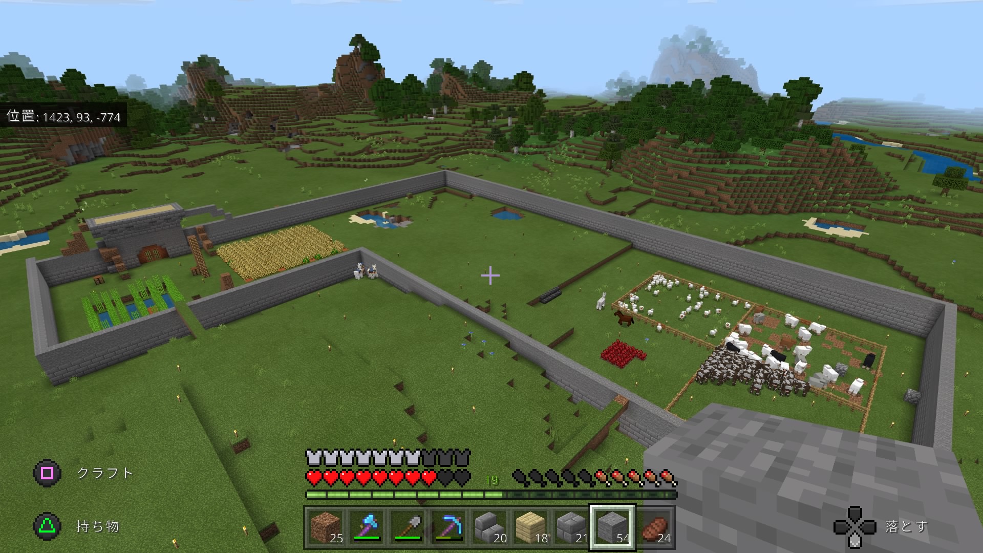 以前にプレイした時、村が襲われたりするイベントが面倒だったので、襲撃者を完全排除するべく壁を作ってみました。