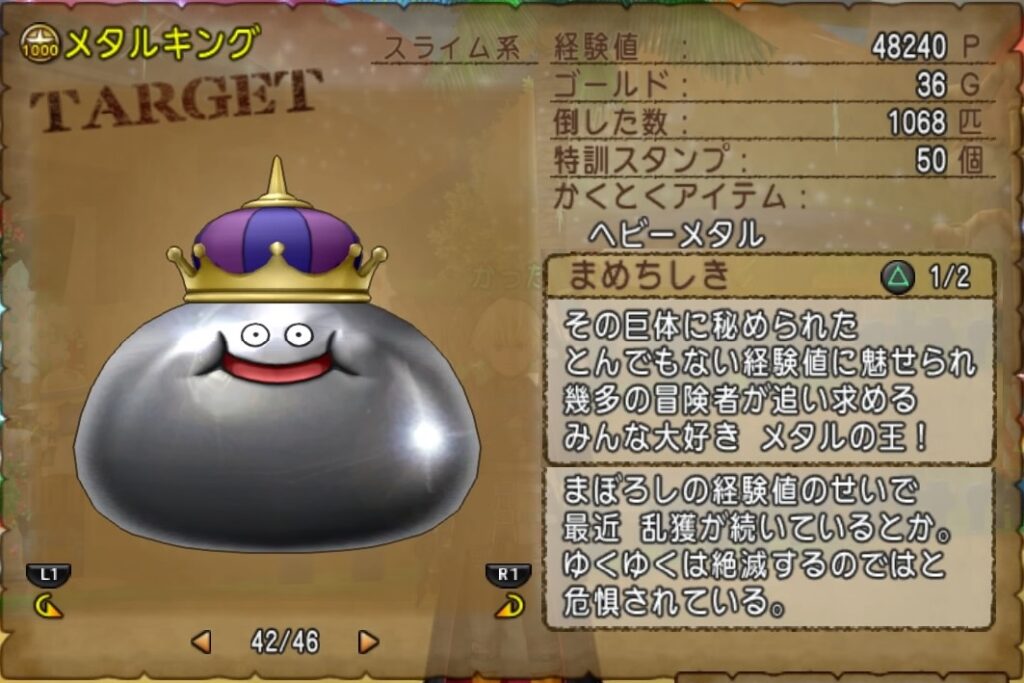 その巨体に秘められたとんでもない経験値に魅せられ幾多の冒険者が追い求めるみんな大好き メタルの王!