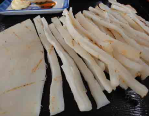 海の町なので、海産物がある。ウニも獲れるし、魚も獲れる。いかの珍味で、「だるまいか」というのがあるのだが、これが私のイチオシだ。真いかを加工した、生のいかと、スルメの中間ぐらいの質感の珍味である。これ、美味しい。そのまま食べても美味しいのに、炙ると、さらに風味豊かになる。