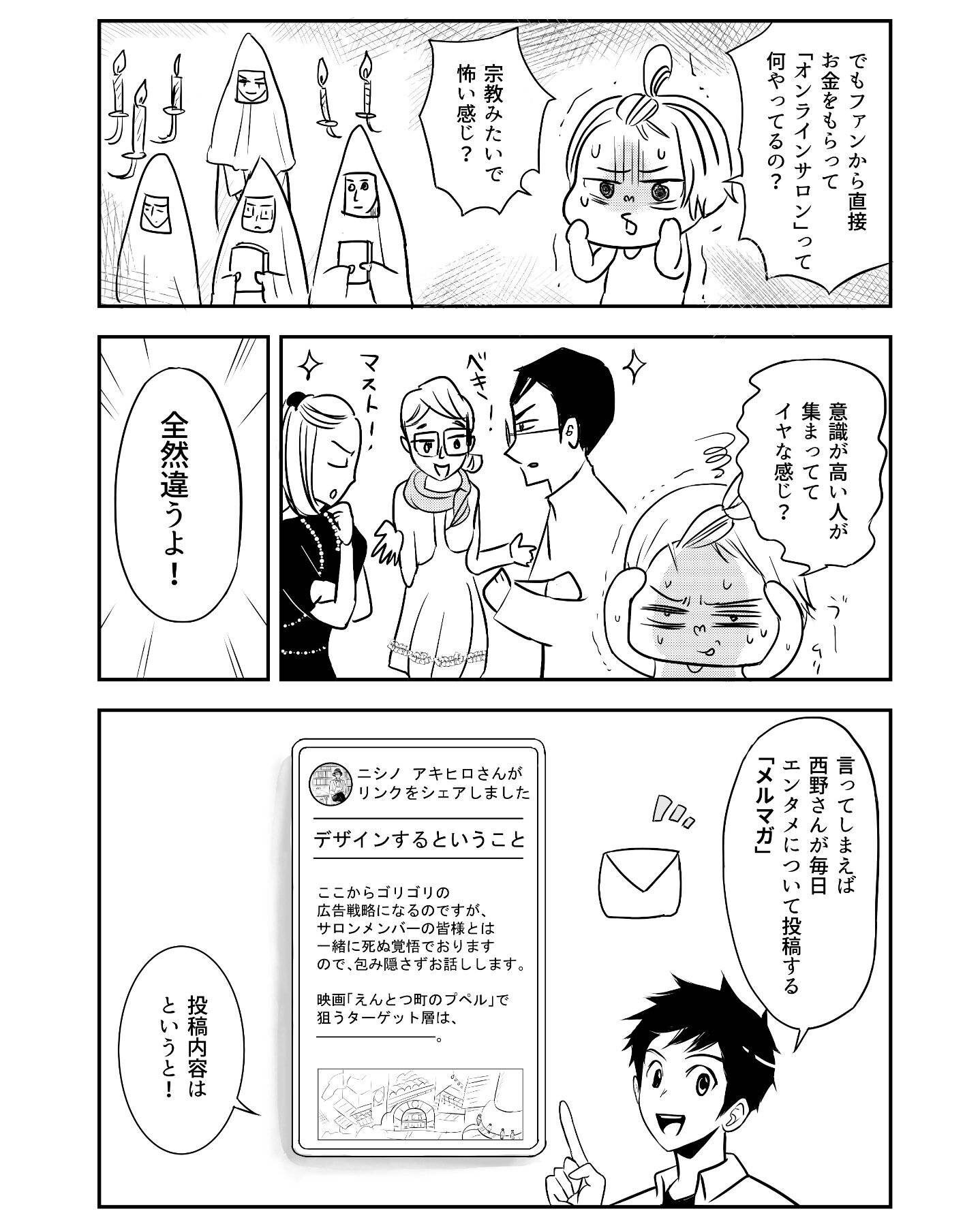 Twitterで発見した、サロンメンバーが描いたと思われる勧誘漫画。