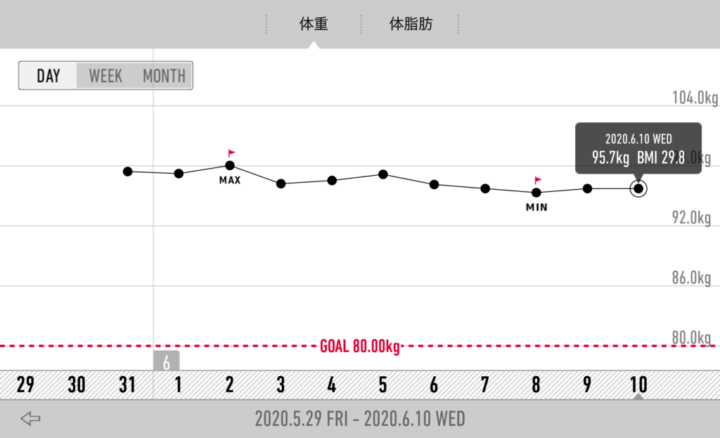 今日の朝の体重は、95.7キロでした。