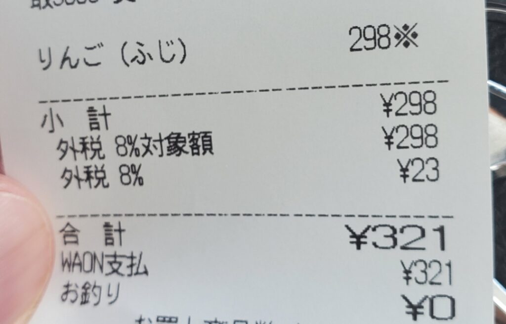 リンゴ1個が300円越えである。