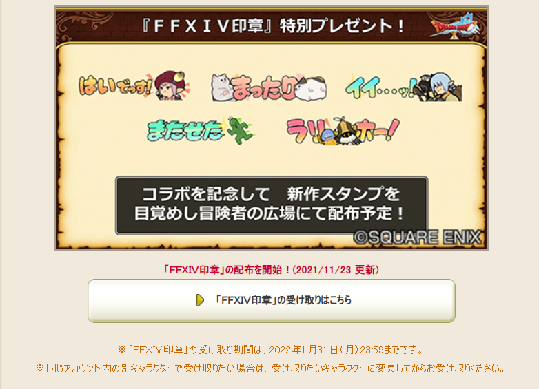 ところで、11月23日~FF14印章プレゼントやってるの、知ってました?