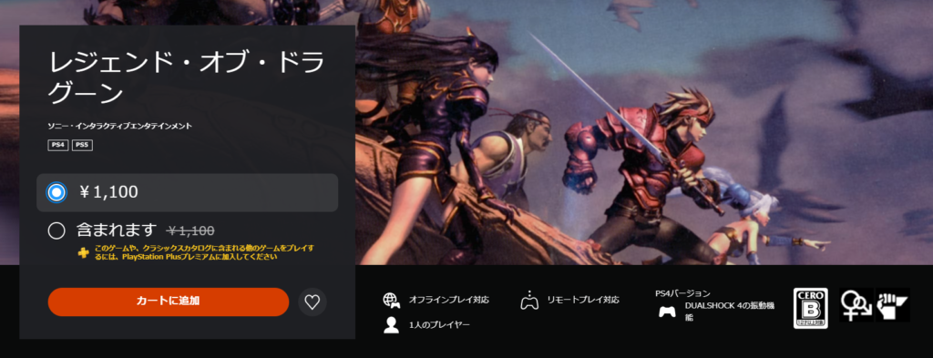 PSストアを見てたら、『レジェンド オブ ドラグーン』っていう、昔にPS1で発売されたRPGがあった。