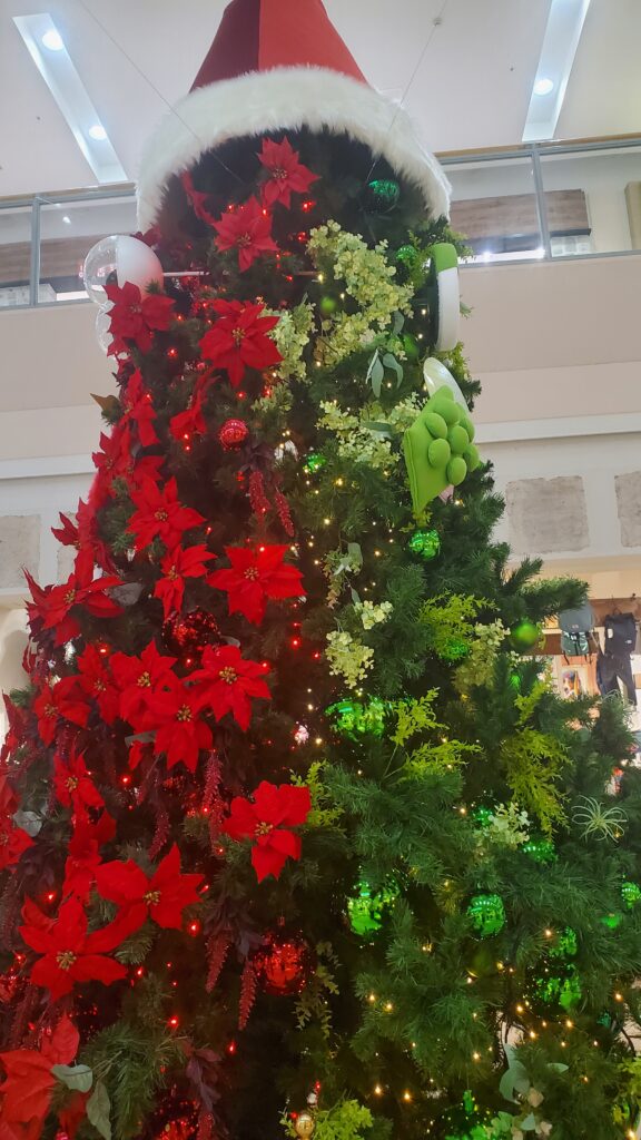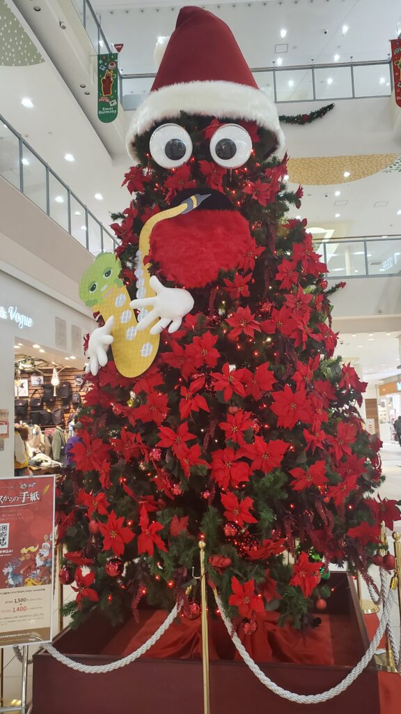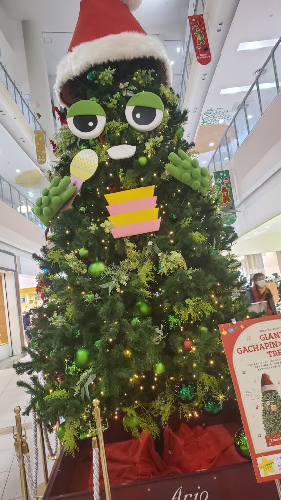 クリスマスツリーが飾られてて、ポンキッキでお馴染みのガチャピンとムックのツリーが展示されてました。かわいいの。