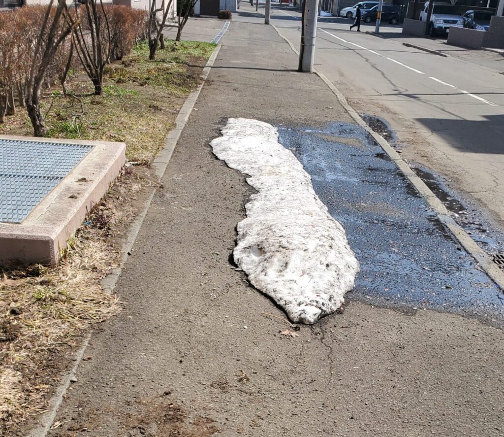 堆雪場は5月になっても雪山がドドドーンと鎮座してたりするし。(道路とかの排雪した雪をためる、ゴミ捨て場ならぬ、雪捨て場のこと)