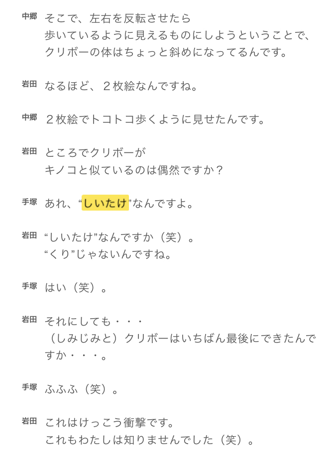 だってねぇ。キノコやカメ以外にも、メットやイカやフグみたいなのも出て来るもの。栗だってあり得ると思いますって。笑
