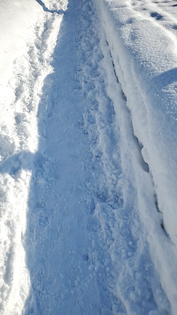 まぁ、後ろからついてったところで、すれ違う人がいると、雪に足をズボっとなるんですけどね。