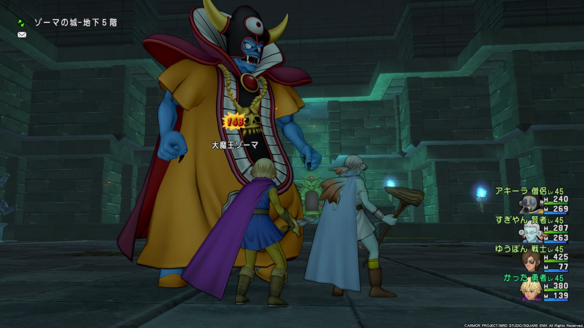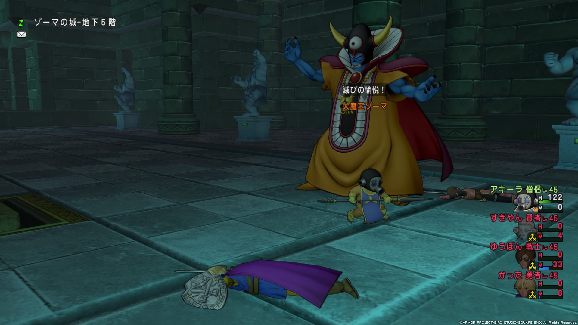 あまりの眠気に勝てず、この日のゾーマ討伐は断念。ゾーマ装備は翌日までお預けです。(涙)